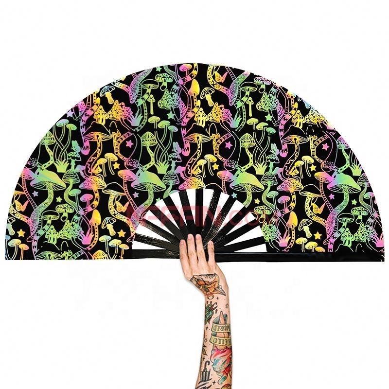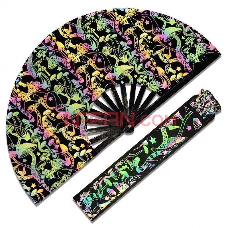 พัดมือพับได้ลายโฮโลแกรมสีรุ้งพร้อมกระเป๋าสำหรับงานเทศกาลดนตรีและงานปาร์ตี้ มีสินค้าในสต็อก