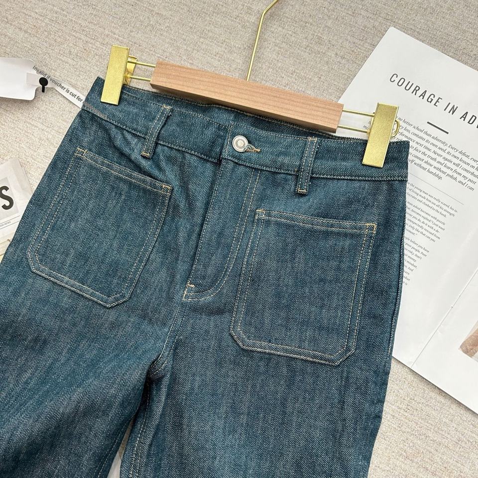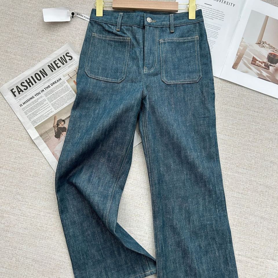 [มีสินค้าในสต็อก] กางเกงยีนส์เอวสูงทรงสลิมฟิตขาบานแบบครอป ผ้าเดนิมโอคายามะจากญี่ปุ่น รุ่นใหม่ ล้างสีด้วยกรดแมงกานีสสูง