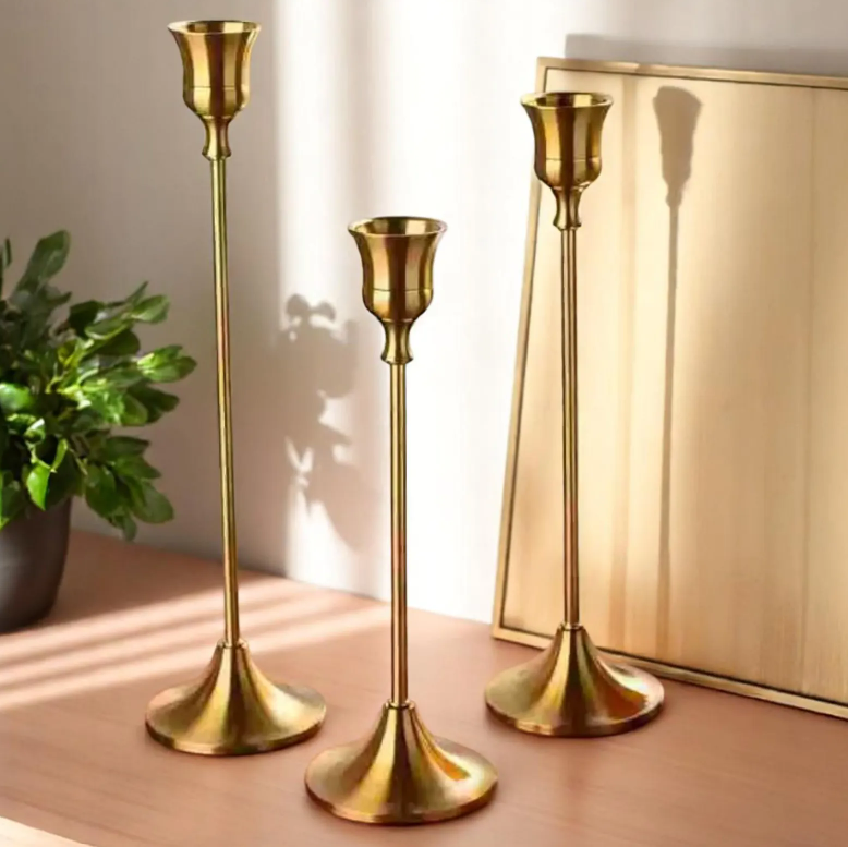 ชุดเชิงเทียนอลูมิเนียมสีทองแบบมินิมอล 3 ชิ้น สไตล์หรูหรา พร้อมส่ง สำหรับตกแต่งบ้าน งานแต่งงาน คริสต์มาส ฮาโลวีน อีสเตอร์