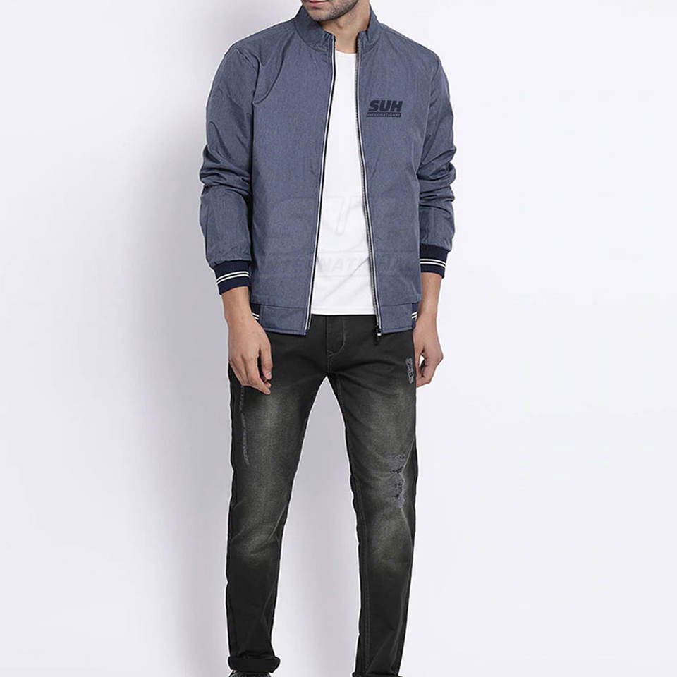มีสินค้าในสต็อก ผลิตในปากีสถาน เสื้อแจ็คเก็ตบอมเบอร์ลำลองสำหรับผู้ชาย ใส่ได้ในฤดูหนาว คอตั้ง มีโลโก้ด้านหน้า ราคาถูกสำหรับขายออนไลน์