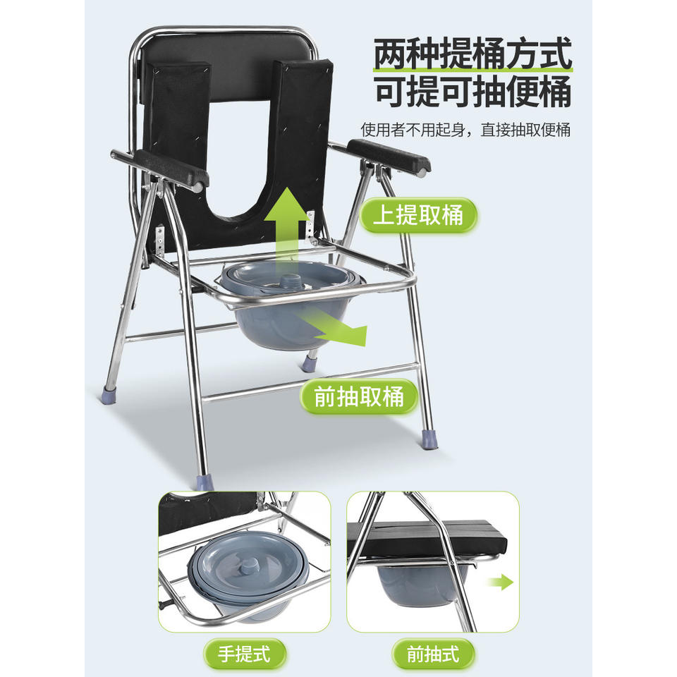เก้าอี้นั่งถ่ายพกพาแบบพับได้ ทำจากสแตนเลส พร้อมพนักพิง สำหรับผู้สูงอายุและสตรีมีครรภ์ เก้าอี้สำหรับผู้พิการและโรงพยาบาล มีสินค้าในสต็อก