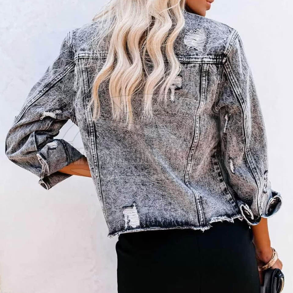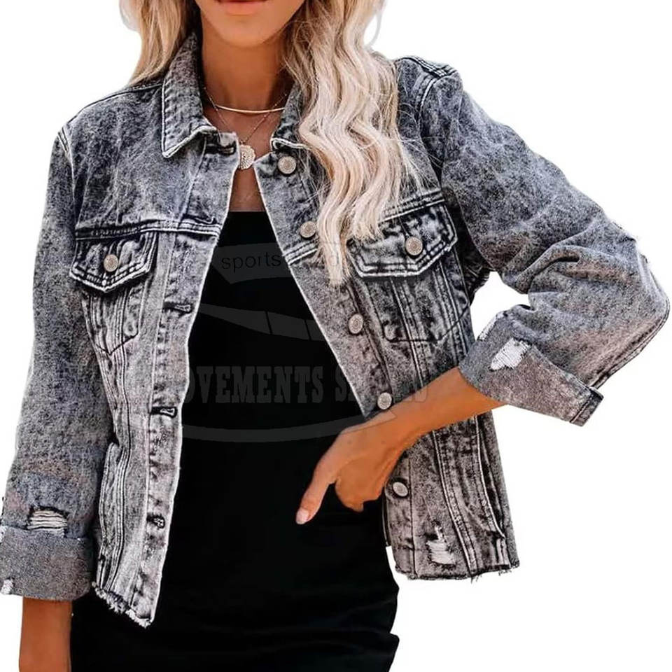 แจ็คเก็ตยีนส์ผู้หญิงคุณภาพระดับมืออาชีพ ผ้าฝ้าย 100% ระบายอากาศได้ดี เหมาะสำหรับใช้งานกลางแจ้งในฤดูใบไม้ร่วง มีสินค้าพร้อมส่ง