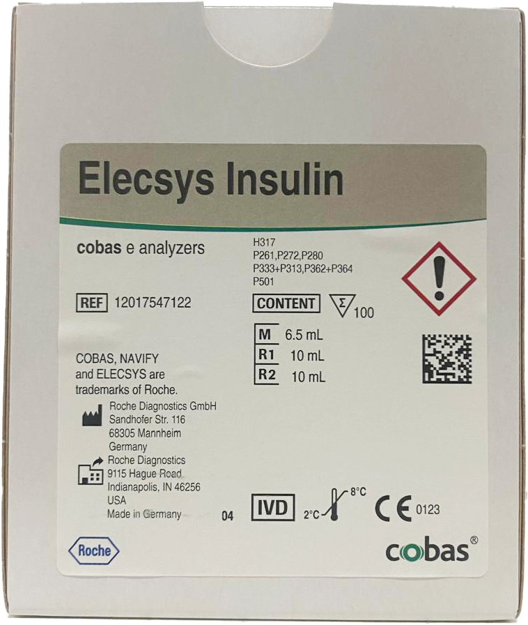 มีสินค้าในสต็อก ROCHE ELECSYS อินซูลิน 12017547122 100 ชุดสำหรับทดสอบ น้ำยาความบริสุทธิ์สูง อุปกรณ์ห้องปฏิบัติการ