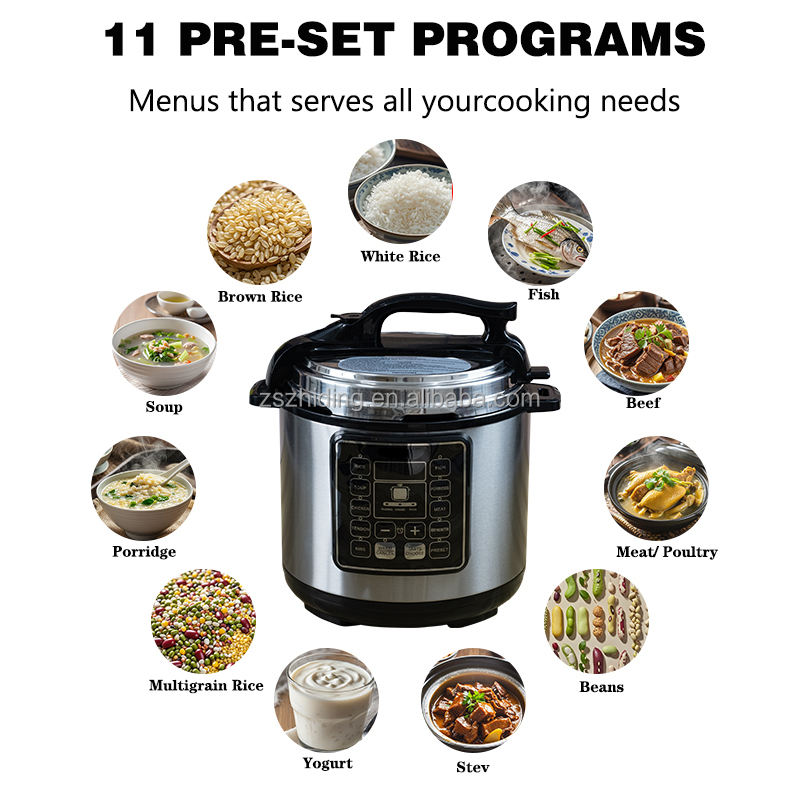 ทำอาหารเวลาล่วงหน้า, จอแสดงผล LED, ไม่ติดเคลือบภายในหม้อ, การป้องกันความร้อนสูงเกินไป, อุปกรณ์ปล่อยแรงดัน