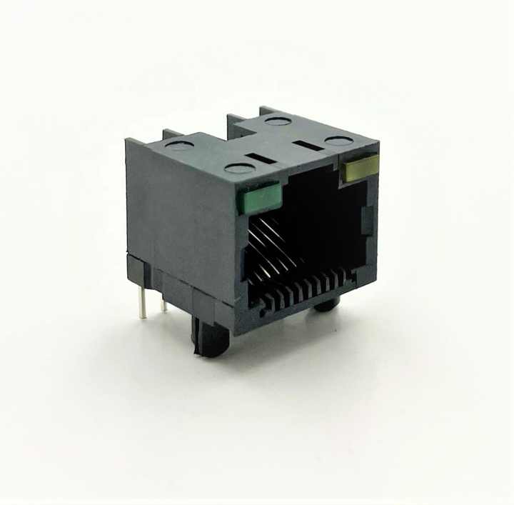 ขั้วต่อ1X1พอร์ต RJ45ตัวเมียพร้อมแถบไฟ LED 8P8C ขั้วต่ออีเทอร์เน็ตแบบไม่มีโล่