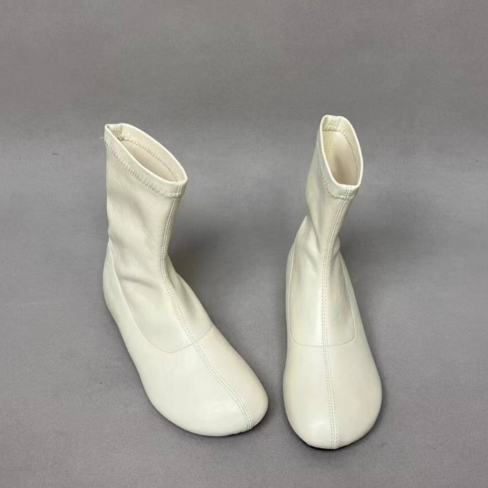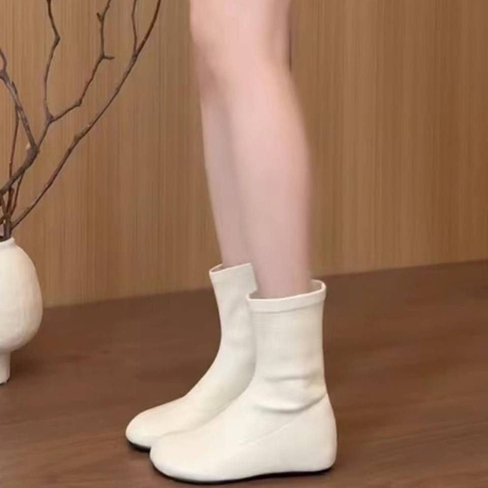 รุ่นพร้อมส่ง~2025 รองเท้าบูทส้นเตารีดแบบซ่อนส้นสำหรับผู้หญิงคุณภาพสูง สีขาว รุ่นใหม่ประจำฤดูใบไม้ร่วง-ฤดูหนาว หัวมน ยืดหยุ่น แฟชั่น รองเท้าบูทขี่ม้า