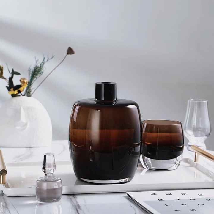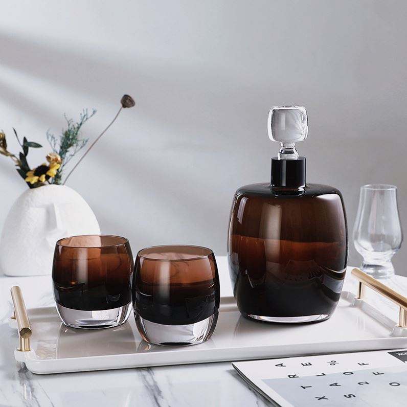 ชุดสุราแบบวินเทจตู้โชว์ขวดเหล้าวิสกี้แดงน้ำตาลพร้อมเครื่องประดับแก้วใสสำหรับเก็บไวน์