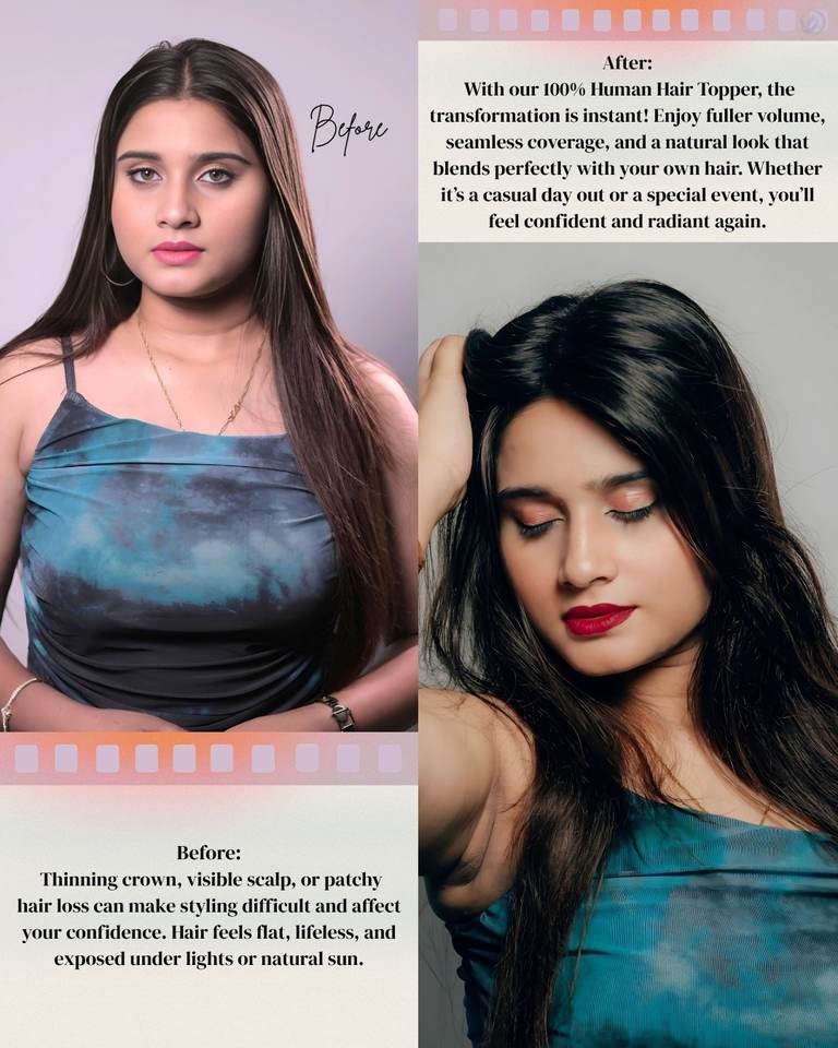 4x5 Premium Quality Remy Hair Extension 100% Tangle-Free Natural Brown and Black Indian Silk Base Topper