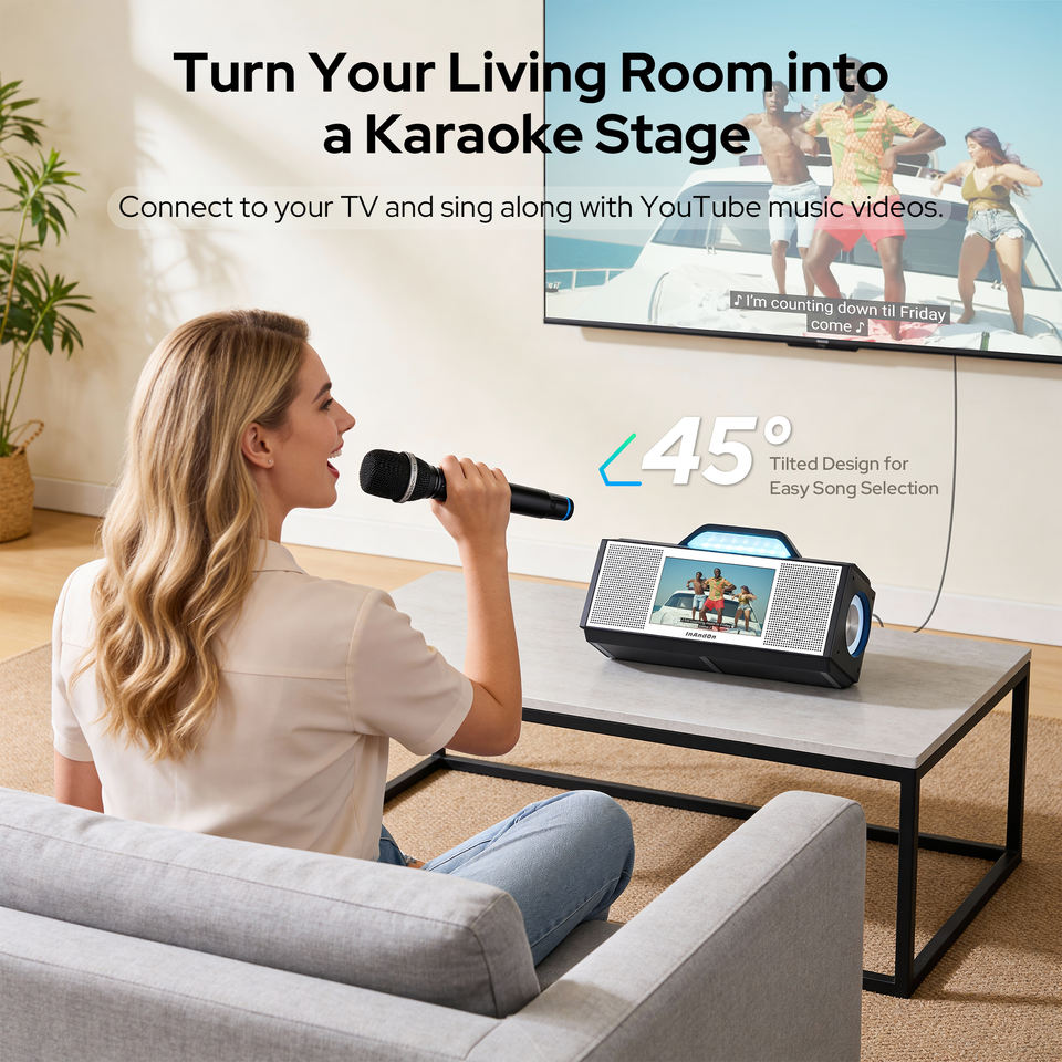 เครื่องคาราโอเกะพกพา InAndOn X5 32GB พร้อมหน้าจอสัมผัสขนาดใหญ่ ลำโพงในตัว WiFi Bluetooth สำหรับงานปาร์ตี้ที่บ้าน