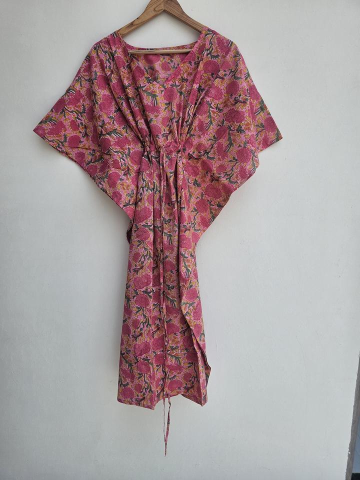 Product Name:Hand Block Print Kaftan Dress 100% Cotton Women's Summer Nightwear