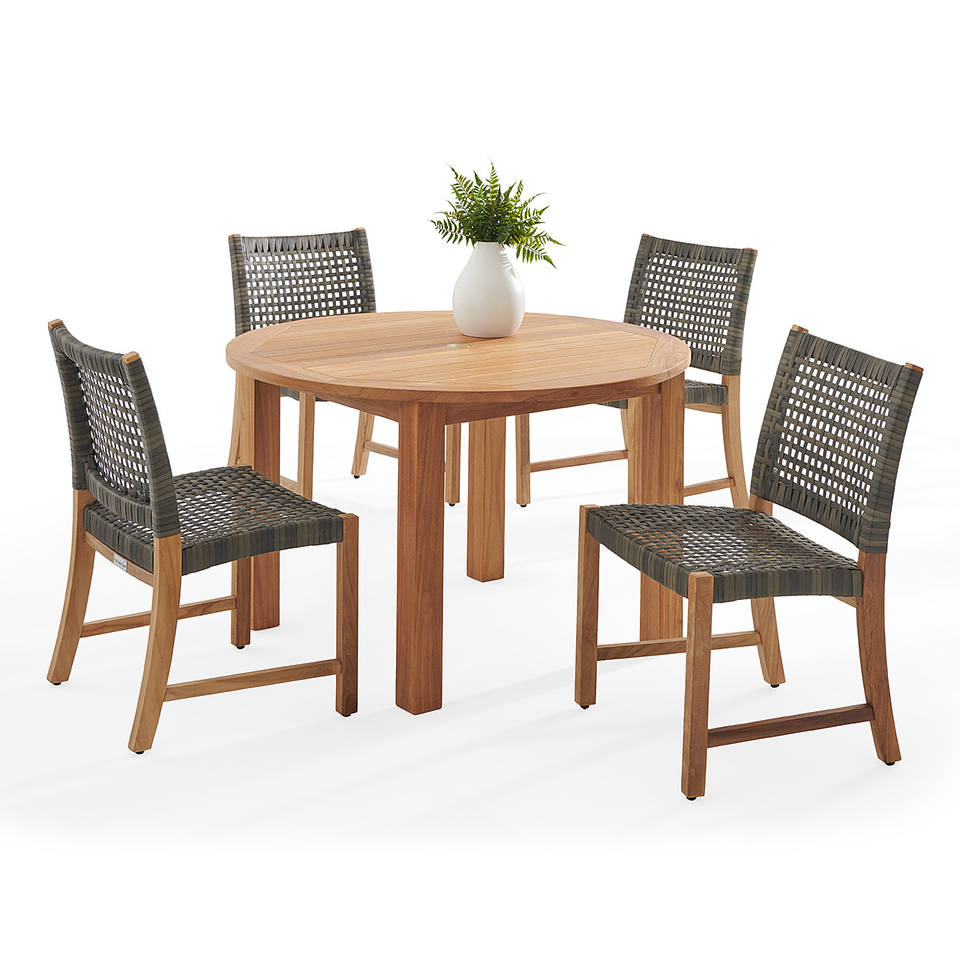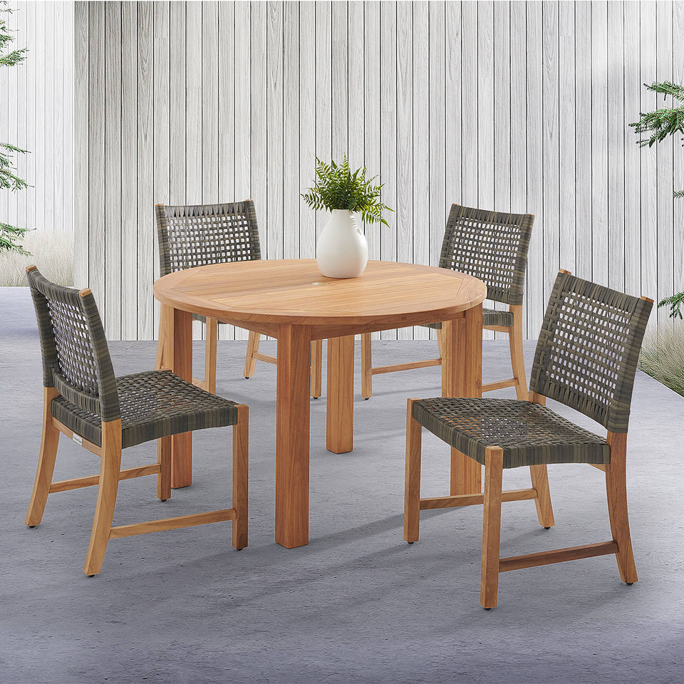 ชุดโต๊ะรับประทานอาหารกลางแจ้งอินารา 5 ชิ้น ทำจากหวายและไม้สักแท้ พร้อมการตกแต่งแบบธรรมชาติสำหรับใช้งานกลางแจ้ง