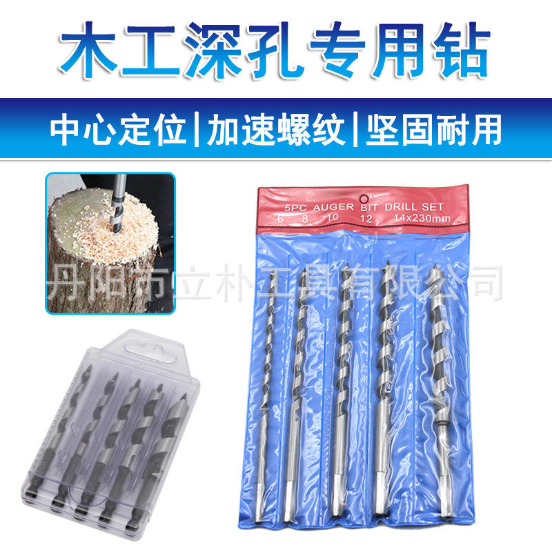 ดอกสว่านเจาะรูเร็วแบบอินช์ ดอกสว่านเจาะรูเหล็กชุบแข็ง ไม่เคลือบผิว ด้ามกลม สำหรับงานไม้ ชุดเจาะรู 5 ชิ้น