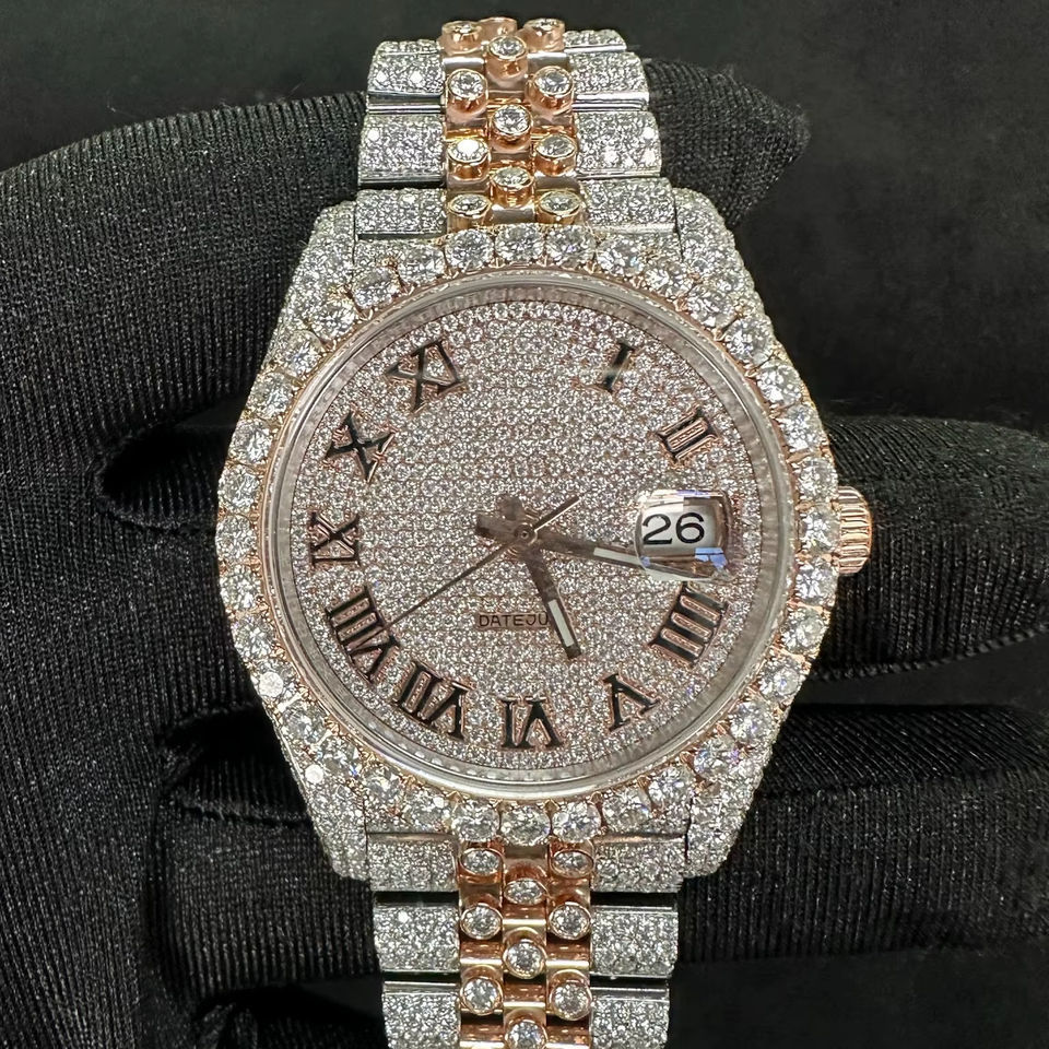 นาฬิกาหรูหราสไตล์เหรียญโรมันสีโรสโกลด์ ประดับเพชรโมอิสซาไนต์คุณภาพสูง ระบบอัตโนมัติ สำหรับผู้ชาย