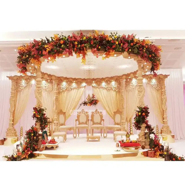 มณฑปงานแต่งงานไม้แกะสลักสุดอลังการ ตกแต่งมณฑปงานแต่งงานไม้สุดหรู ดีไซน์ใหม่ ชุดมณฑปงานแต่งงานไม้สำหรับจัดงานในแคนาดา