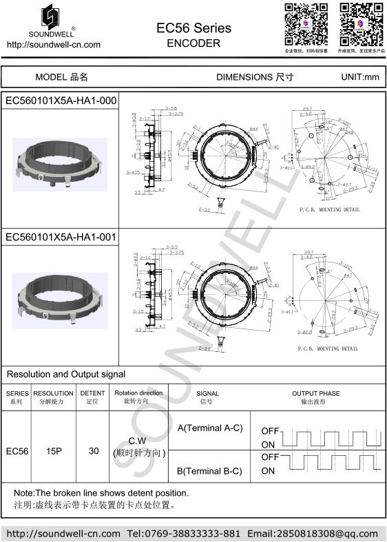 ลักษณะ:, ตัวเข้ารหัสแบบเพิ่มหน่วยเพลากลวงขนาด 56 มม