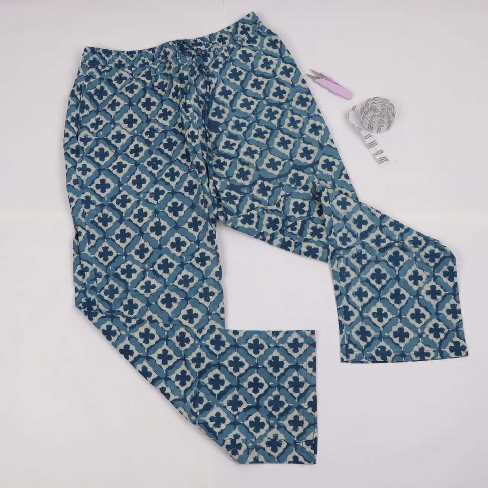 กางเกงครามในบล็อกมือพิมพ์