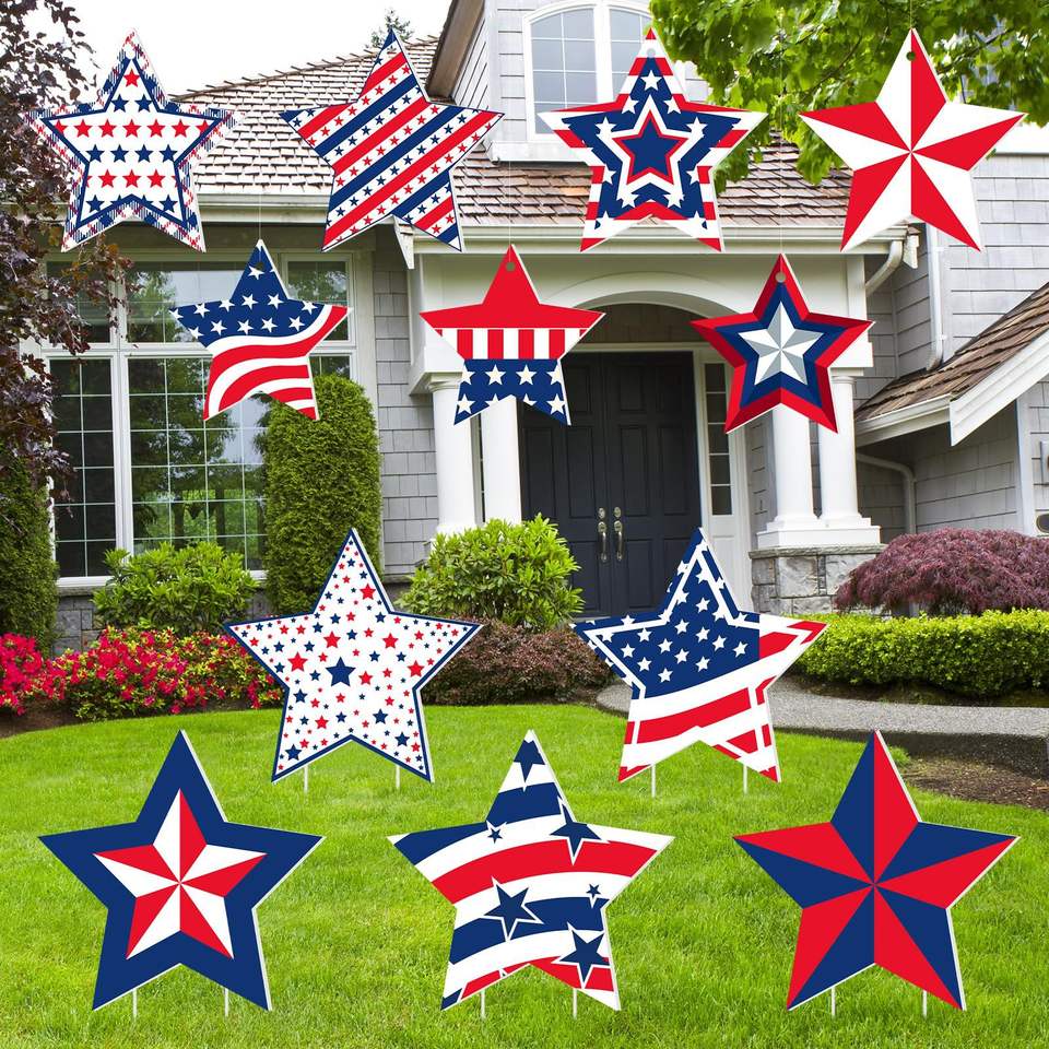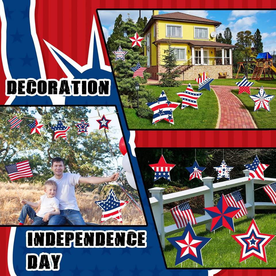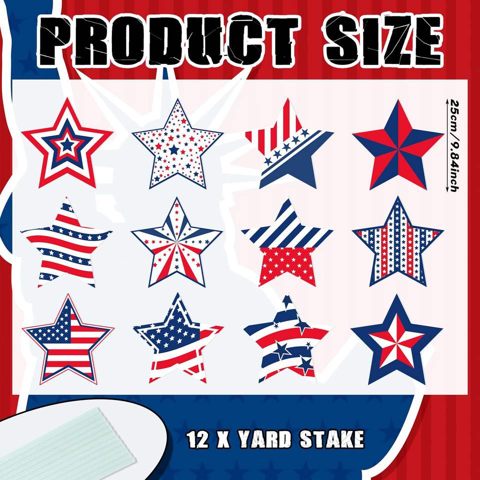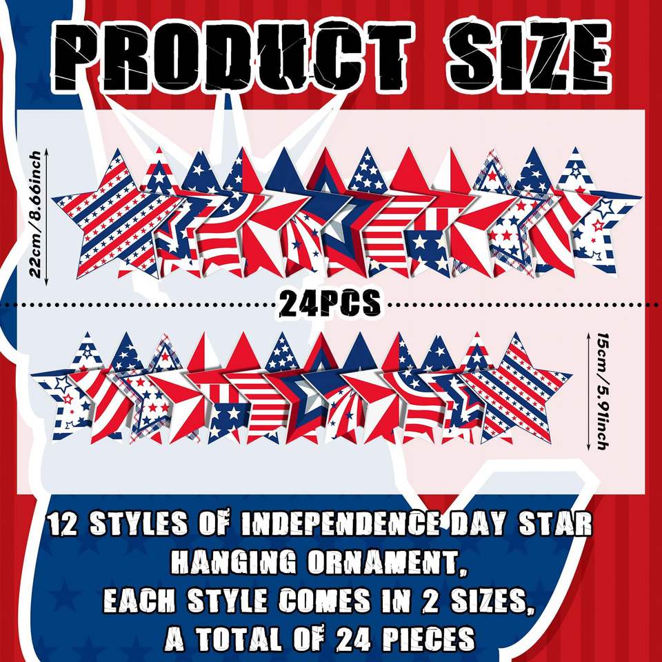 ป้ายตกแต่งวันประกาศอิสรภาพ ลายดาวห้าแฉกแบบใหม่ สีแดง น้ำเงิน ขาว ขนาด 25*25 ซม. กันน้ำ ทนแดด ทำจากพลาสติก