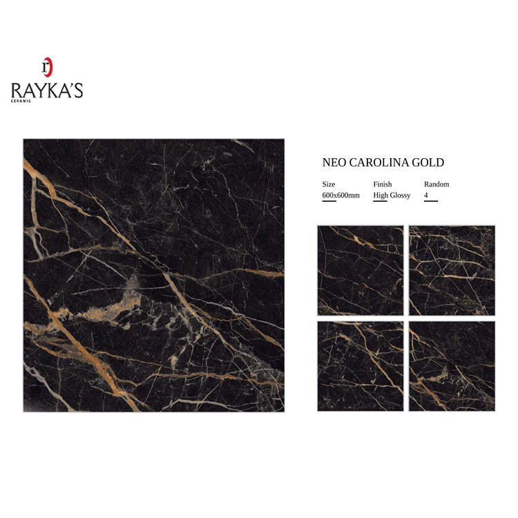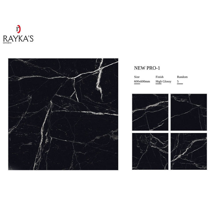 กระเบื้องปูพื้นพอร์ซเลนหนา5มม. สำหรับห้องนั่งเล่นดีไซน์ทันสมัยเคลือบเงาขนาด600x600มม. อินเดีย