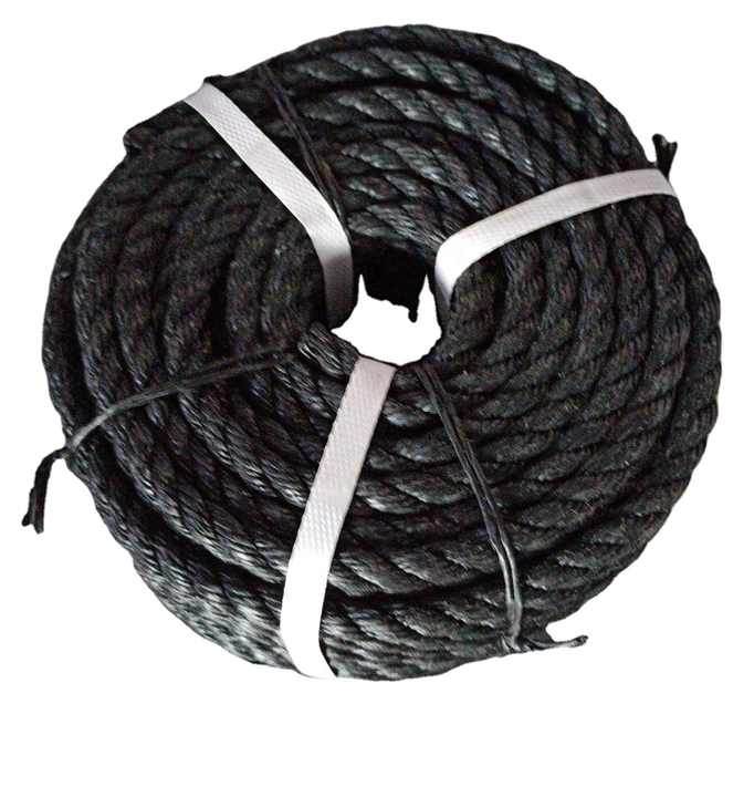 เชือก PP สีดำคุณภาพสูงจากโรงงานอินเดีย แบบ 3-4 เส้น ทนน้ำ แข็งแรงสูง ป้องกันรังสียูวี ขนาด 4 มม. ถึง 32 มม.