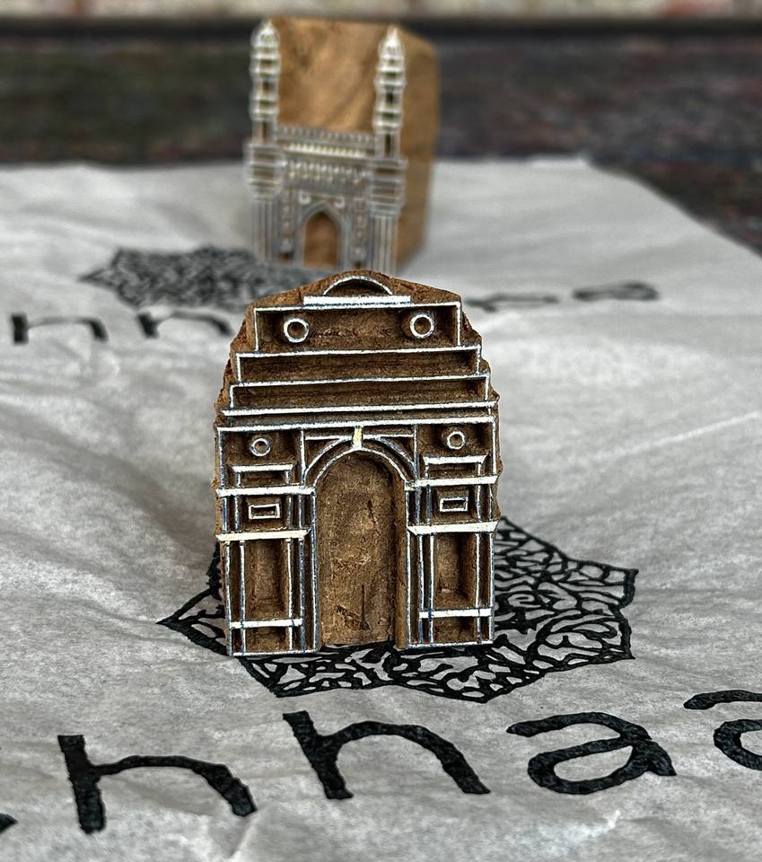 ตราประทับไม้พิมพ์ลายอินเดียเกต | งานพิมพ์ไม้สักแกะสลักด้วยมือ