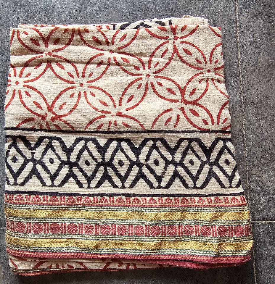 ชื่อสินค้า:ผ้าโสร่งพิมพ์ลายบล็อกขอบไหมทอง