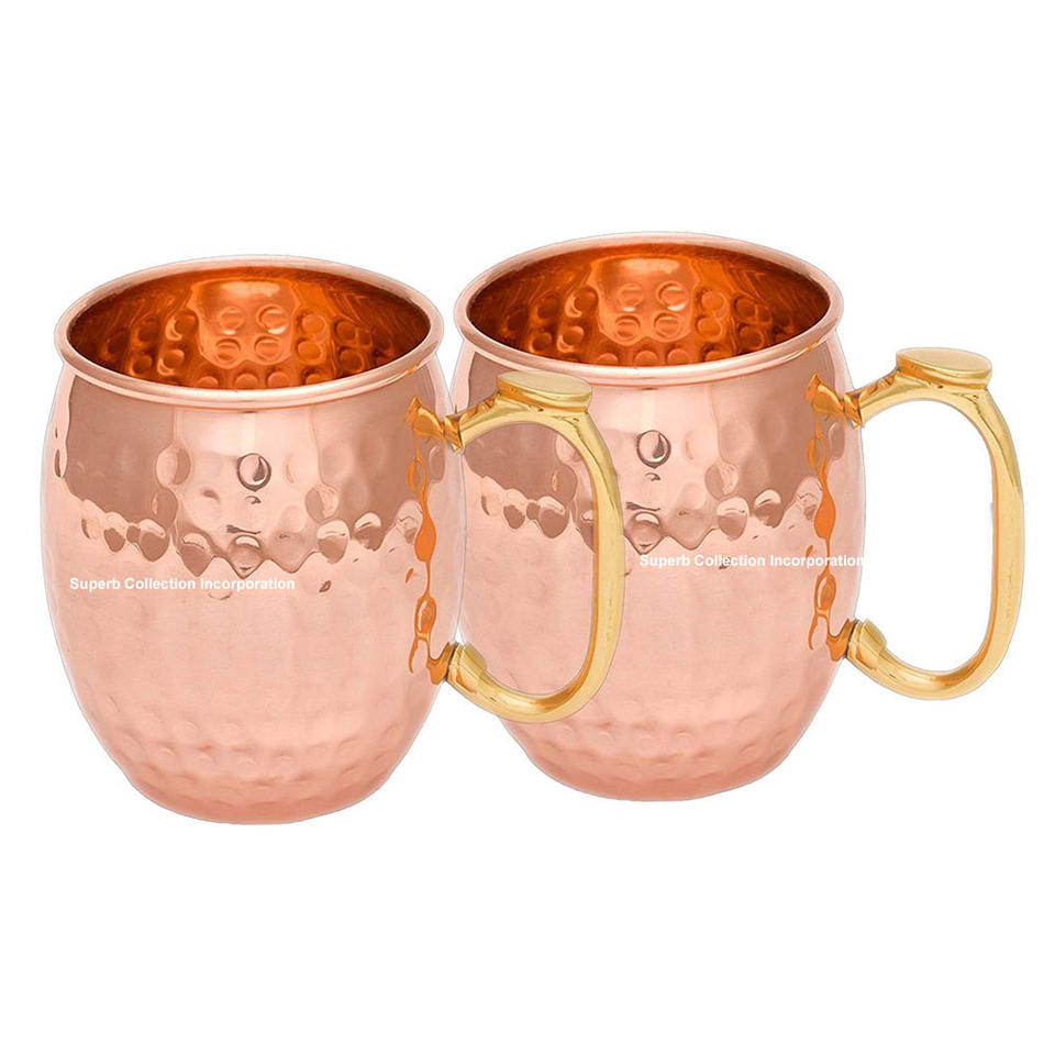 ชุดแก้วทองแดงทุบ2ใบสำหรับงานทำมือแก้วโลหะสำหรับงานปาร์ตี้ชุดผู้ผลิตในอินเดีย