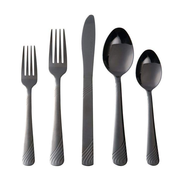เครื่องใช้บนโต๊ะอาหารสแตนเลสแบบใช้แล้วทิ้ง5ชิ้นด้ามจับบิดสีดำ