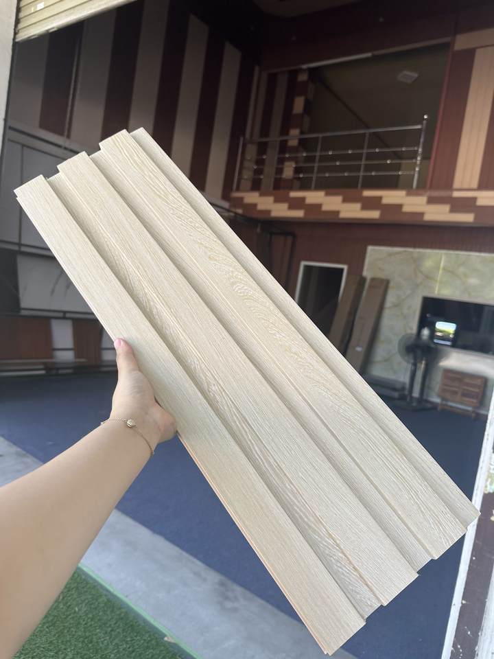 แผ่นผนังพีวีซีทนไฟกันน้ำ3-WAVE 5-WAVE ตกแต่ง WPC Cladding 200mm พาร์ทเมนต์ทันสมัยอินเดีย