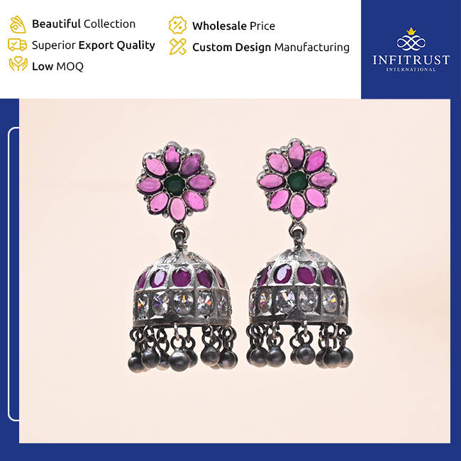 ต่างหู jhumka ประดับลูกปัดโลหะทับทิมดีไซน์ตามต้องการ