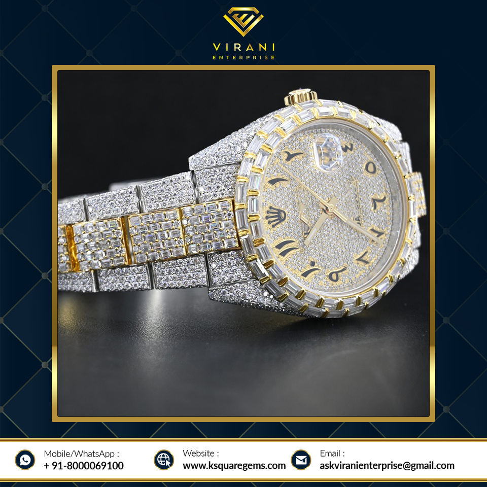 นาฬิกาเพชรโมอิสซาไนต์คุณภาพเยี่ยมจากอินเดีย ตัวเรือนสแตนเลสสตีล หน้าปัดแบบอนาล็อก ประดับเพชรระดับ VVS