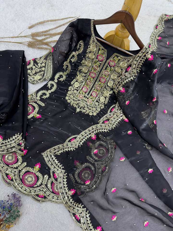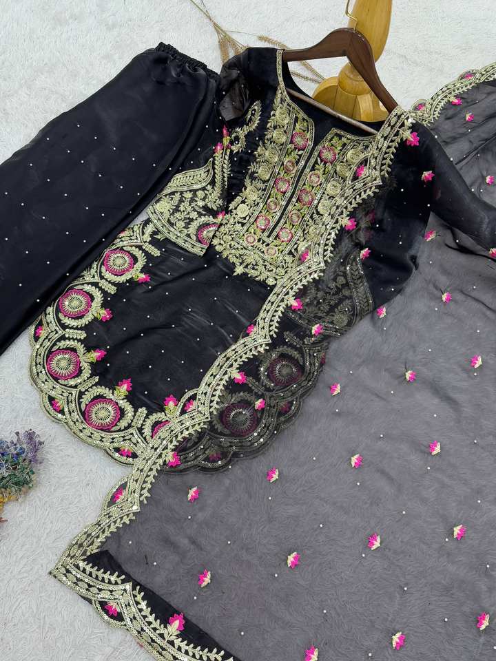 ชุดอินเดียและปากีสถานชุดอินเดียล่าสุดชุดสูทชาราดูฮัตตาปักลายเสื้อทำงานปรับแต่งเองขายส่ง