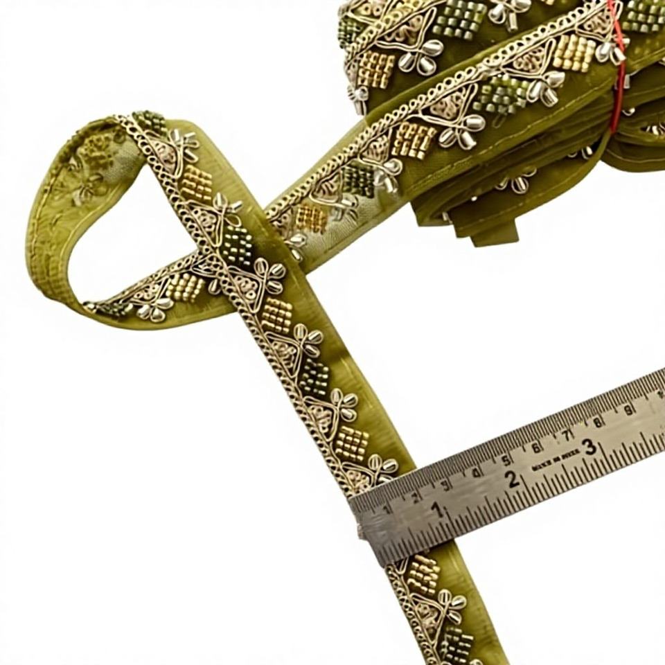 ซัพพลายเออร์อินเดีย ดีไซน์ใหม่ ลูกไม้ปักลายแบบดั้งเดิม โพลีเอสเตอร์ 100% ประดับลูกปัดขนาด 25 มม. เนื้อนุ่ม สีตามสั่ง สำหรับชุดเดรส