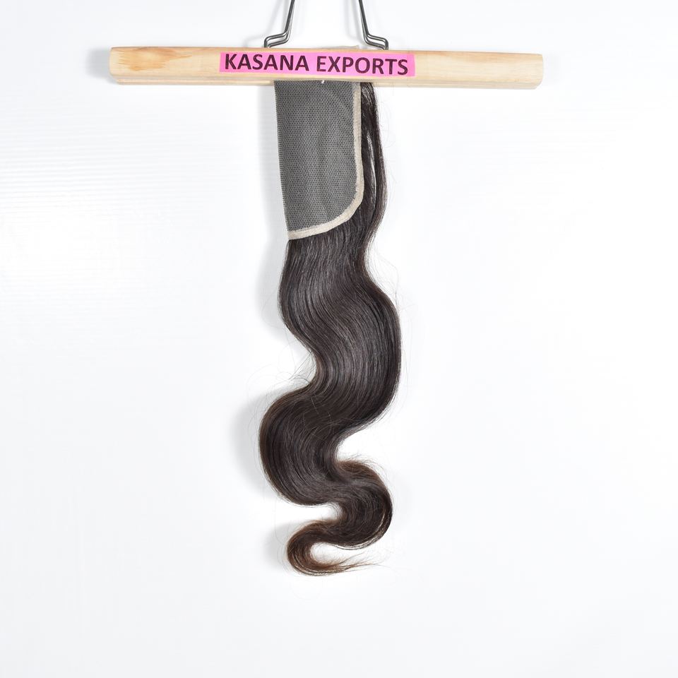 วิกผมอินเดียแบบ 5*5 Closure Temple Bundles แบบไม่ผ่านการแปรรูป ไม่มี Lace Front ถักด้วยเครื่องจักร แบบ Double Weft ลอนลึก ผมแท้