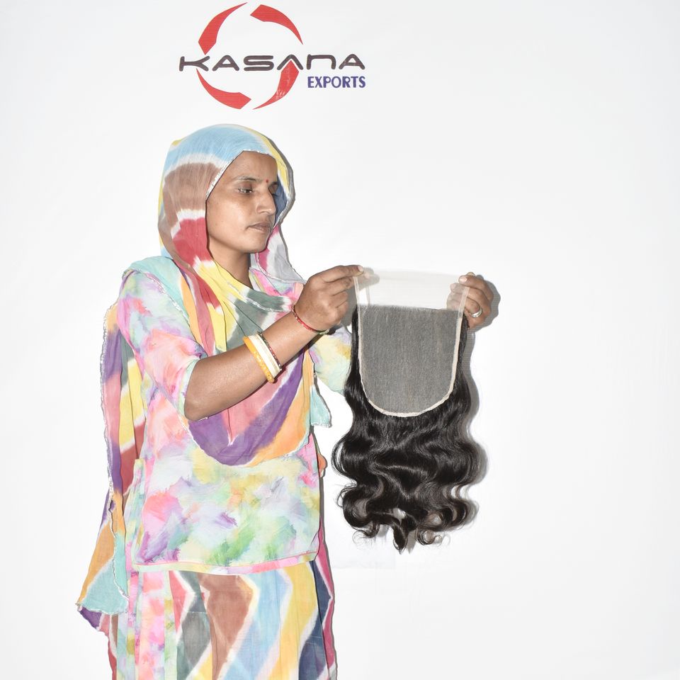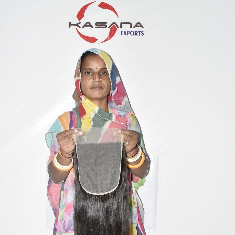 ผู้ผลิตผมอินเดียแบบ 7*7 ผลิตผมแท้ 100% จัดเรียงเกล็ดผมอย่างดี แบบตรง ทอแบบด้วยเครื่องจักร แบบสองชั้น สีธรรมชาติ ผมแท้สีดำ
