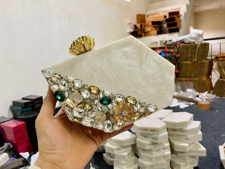 Indian Animal Style Designer Women's Large Capacity Handmade Real Touch Horn Clutch Bag Beaded Evening Shopping Art Collectible