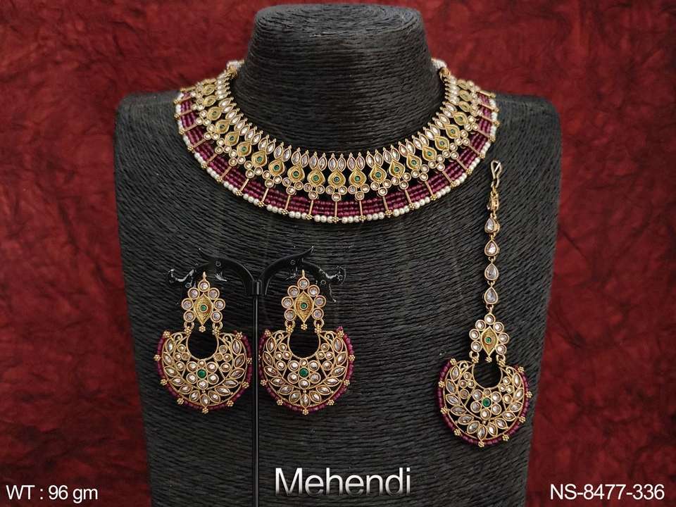 อินเดียโบราณเครื่องประดับ Mehendi การออกแบบอุปกรณ์เครื่องประดับพรรคสวมใส่หินที่สวยงามเต็มรูปแบบโบราณชุดเครื่องประดับสร้อยคอสั้น