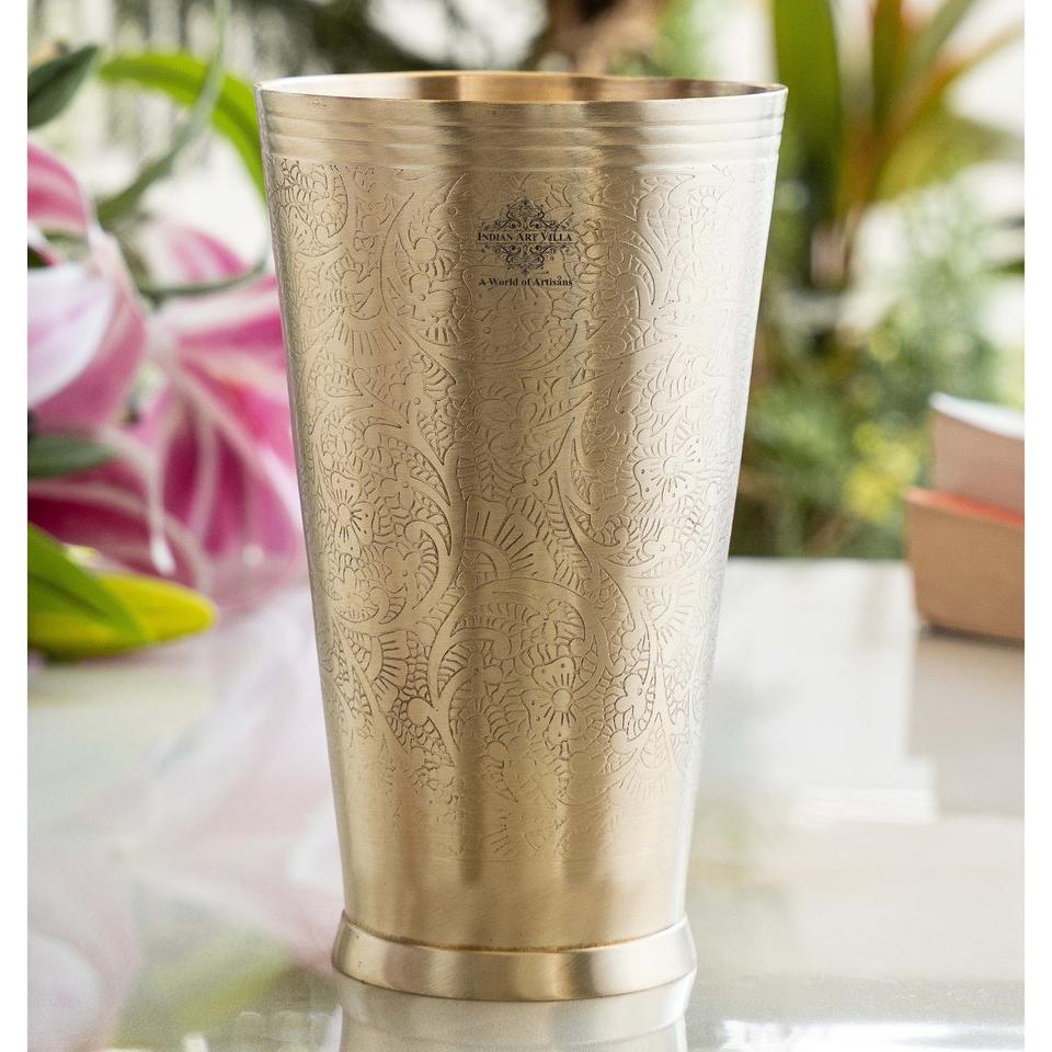 แก้วทัมเบลอร์ดีไซน์ลายนูนทำจากทองเหลืองแท้งานศิลปะแบบอินเดียสำหรับใส่เครื่องดื่ม