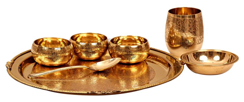 ชุดรับประทานอาหารค่ำแบบดั้งเดิมลายนูนทำจากทองเหลืองบริสุทธิ์สำหรับบ้านโรงแรมและร้านอาหาร7ชิ้น