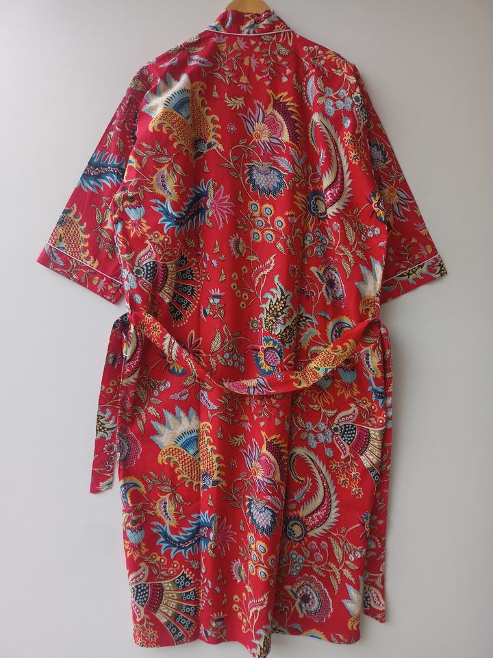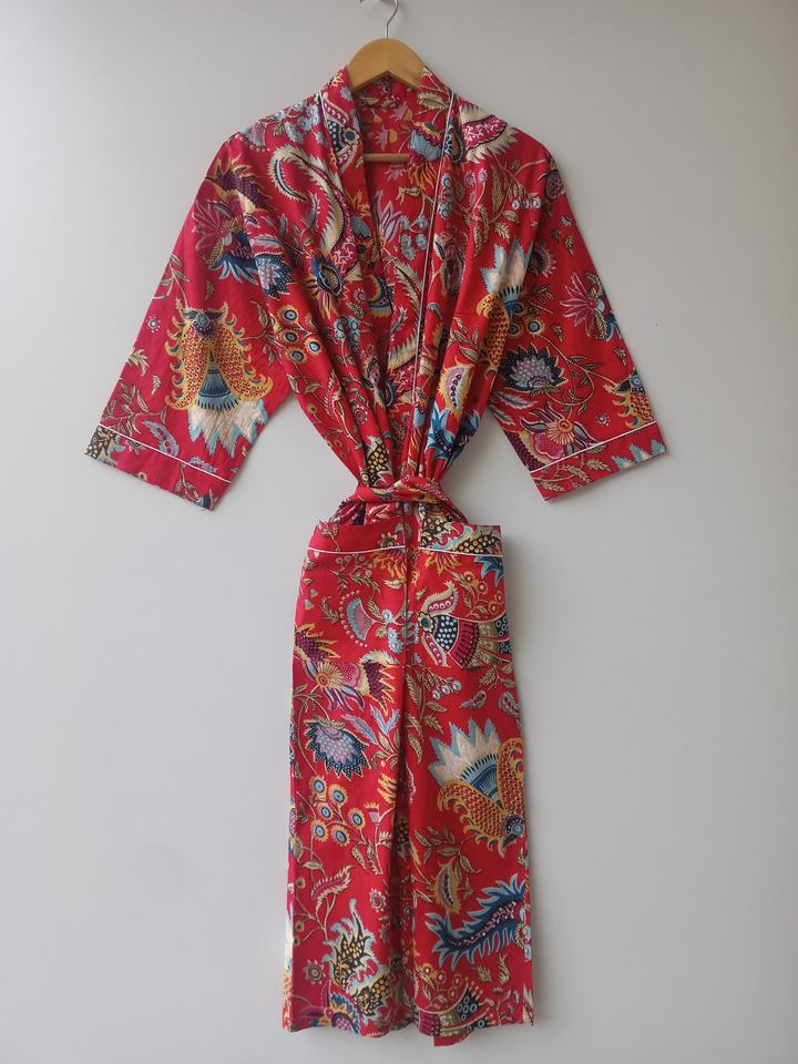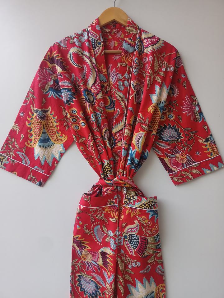Indian Artisan Cotton Kimono Robe Floral Hand Block Print Long Nightwear Wholesale Supplier Full Sleeve Dressing Gown
