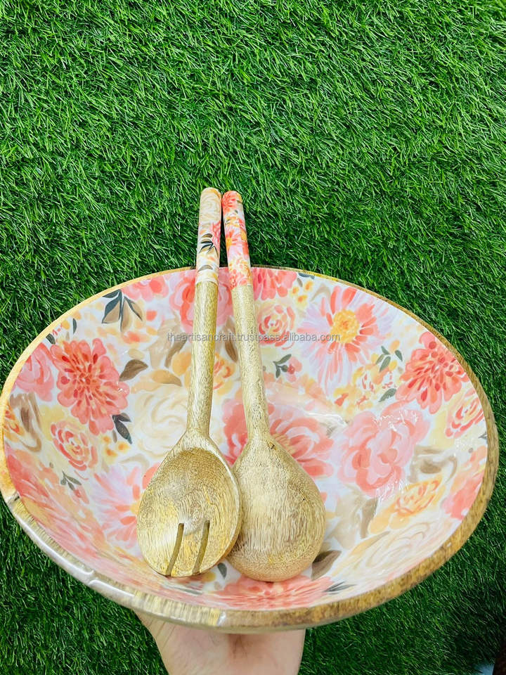 ช่างฝีมืออินเดียชามไม้พร้อมเคลือบเคลือบเคลือบเงาพร้อมจานเสิร์ฟซุปผลไม้ใหม่เป็นมิตรต่อสิ่งแวดล้อมสำหรับเป็นของขวัญ