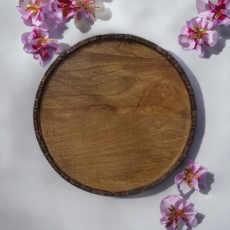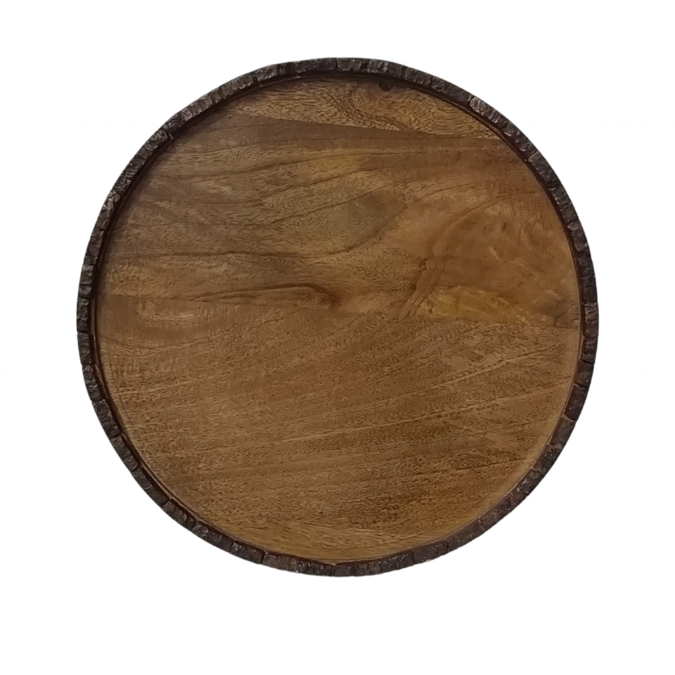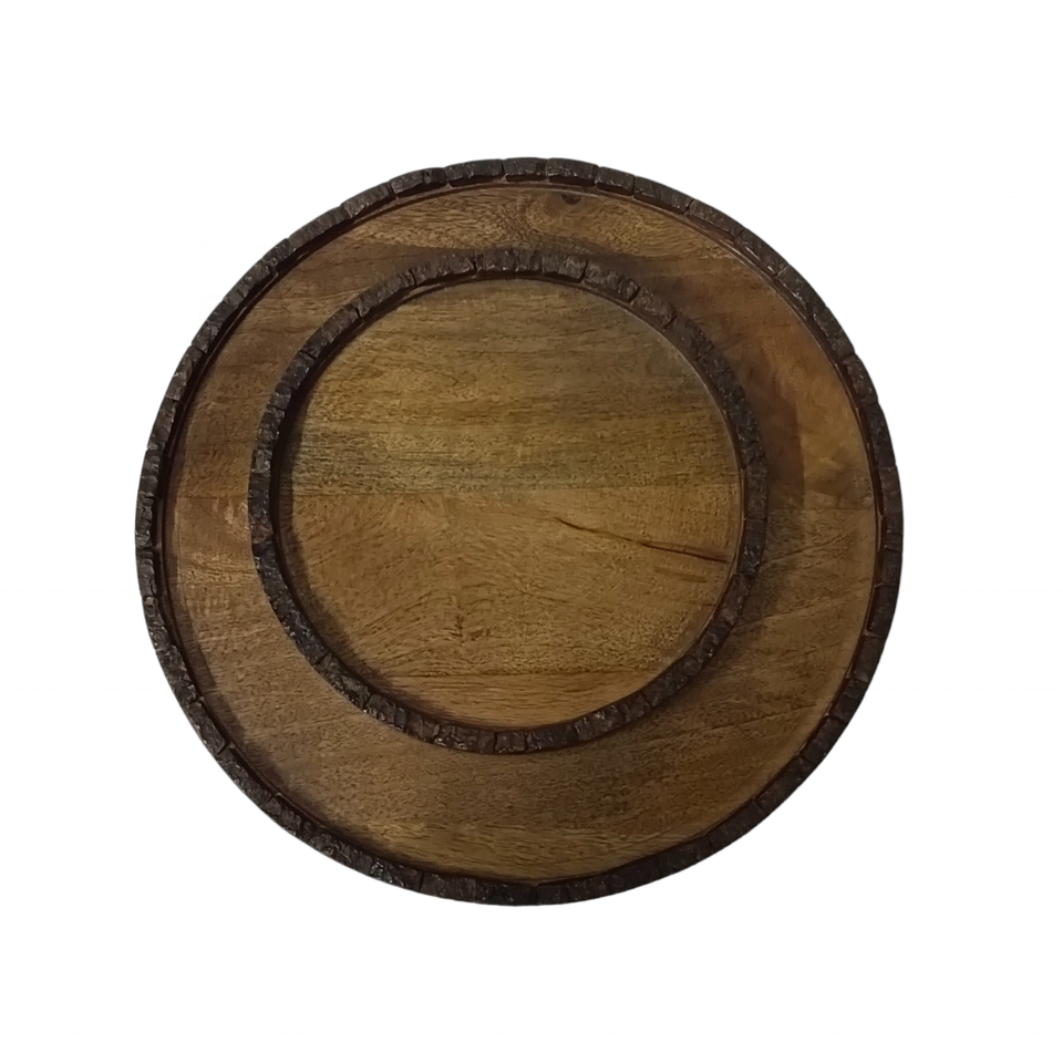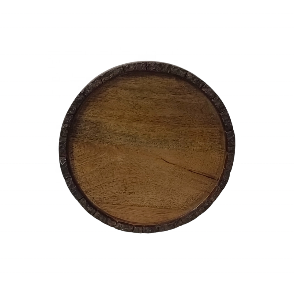 ช่างฝีมืออินเดียถาดเสิร์ฟไม้มะม่วงสีน้ำตาลธรรมชาติแบบชนบทของตกแต่งงานแต่งงานกลางเปลือกไม้ขอบเทียนอื่น