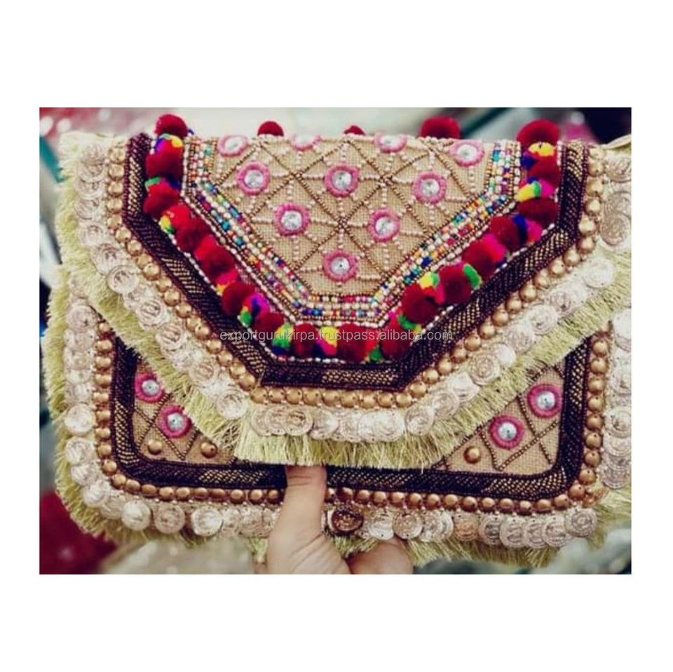 กระเป๋าคลัทช์ทรงซองจดหมายทำจากผ้าลูกปัดอินเดียสำหรับสุภาพสตรีอุปกรณ์เสริมงานฝีมือส่งออกจากบ้าน