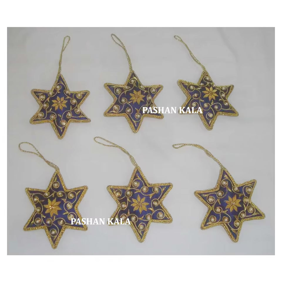 Indian Best Quality Golden Zari Embroidery With Beaded Work On Unique Star Shape Christmas Tree Decoration Hanging Ornaments