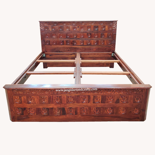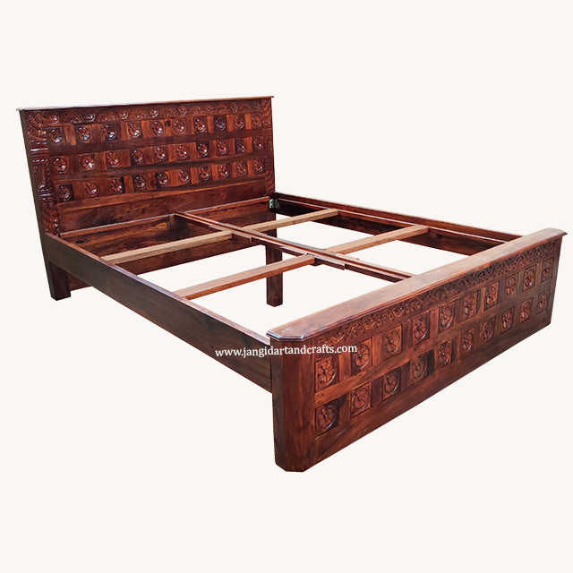 ชุดห้องนอนคลาสสิกยอดนิยมของอินเดีย เตียงคู่ไม้แกะสลักด้วยมือ สวยงาม สมาร์ท ทำด้วยมือ