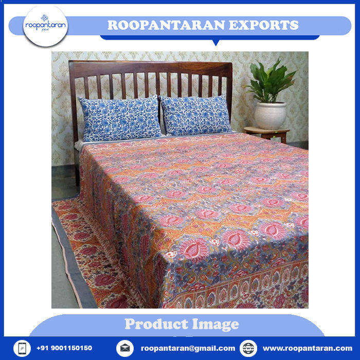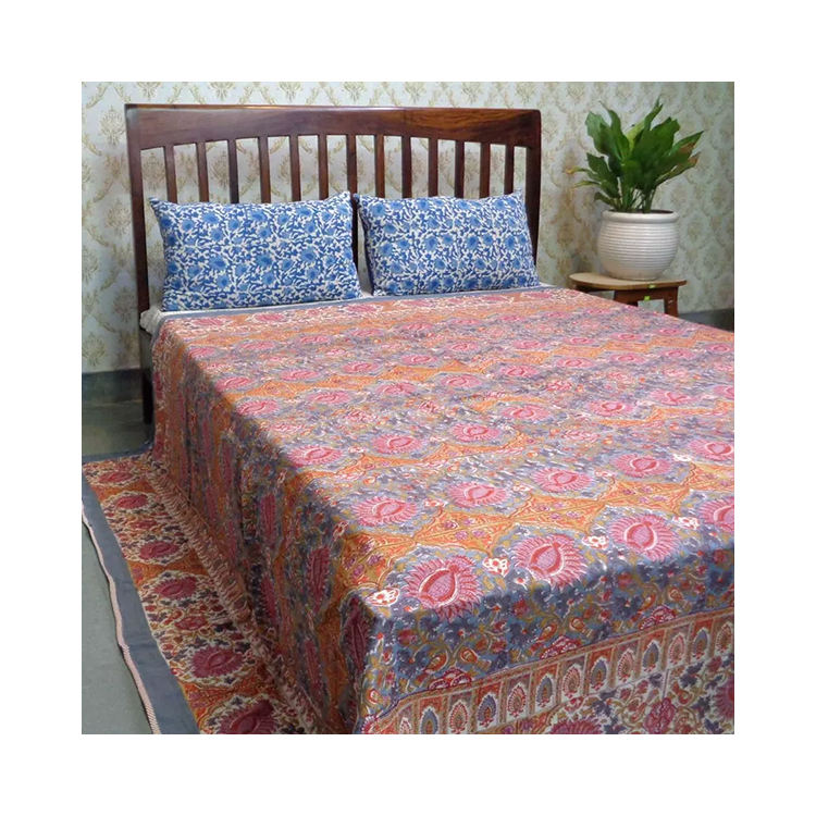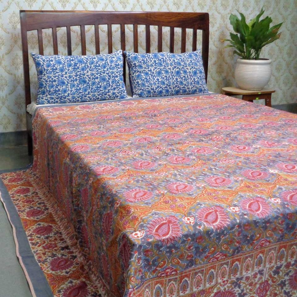 ผ้านวมดีไซน์นกสวรรค์ ขนาดควีนไซส์ ผลิตจากผ้าฝ้ายออร์แกนิก ผลิตในอินเดีย ขายดี พร้อมลายพิมพ์บล็อกด้วยมือ ราคาดีที่สุด