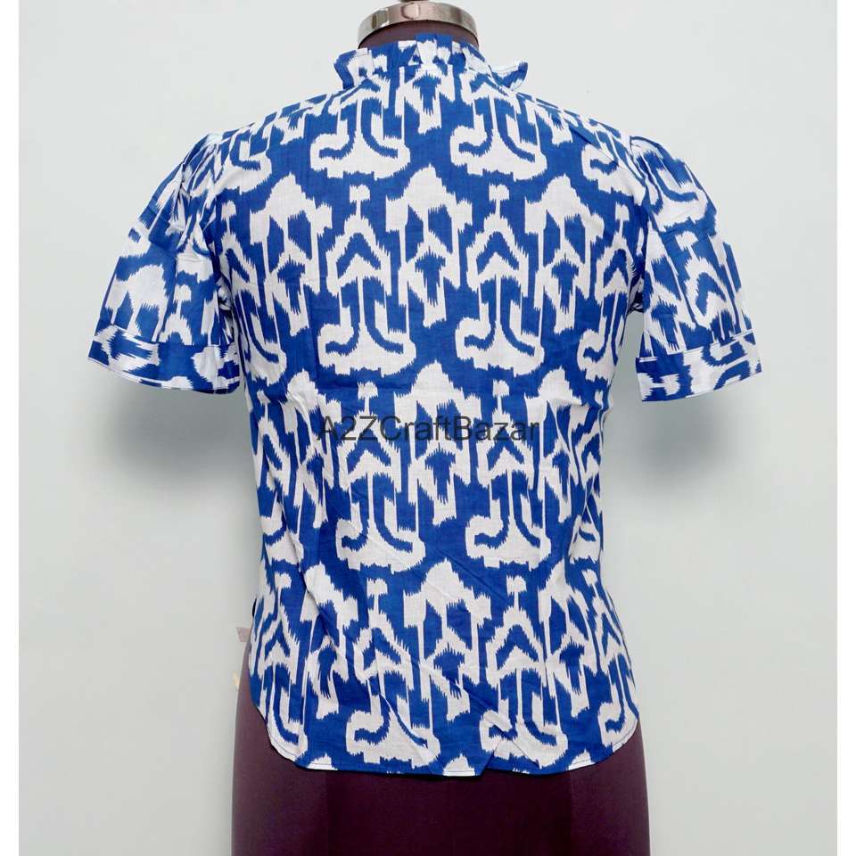 Indian Block Print Office Lady Casual Non Woven Summer Blouse 100% Pure Cotton Long Sleeve Bohemian Floral Design Eco-Friendly