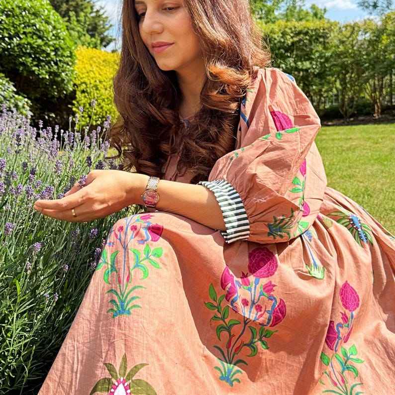 ชุดเดรสยาวสไตล์โบฮีเมียน ผ้าฝ้ายแท้ พิมพ์ลายบล็อกอินเดีย สีสันสดใส ใส่สบาย เหมาะสำหรับคุณแม่ในช่วงฤดูร้อน