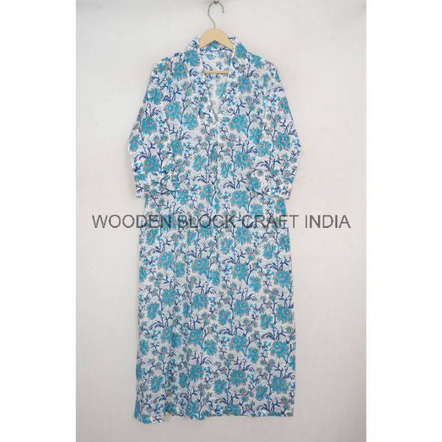 เสื้อคลุมลายบล็อกพิมพ์แบบอินเดียสำหรับใส่ในชีวิตประจำวันหรือเป็นของขวัญ ชุดเดรสผ้าฝ้ายพิมพ์ลายดอกไม้สวยงามและเป็นมิตรกับสิ่งแวดล้อมสำหรับผู้หญิง