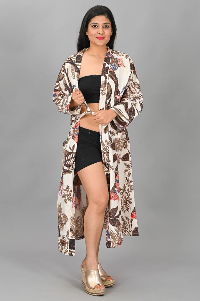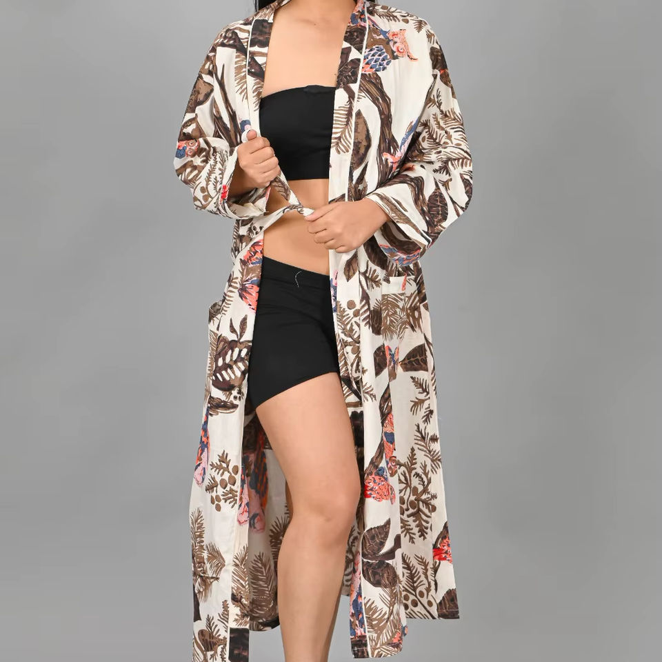 ชุดคลุมกิโมโนผ้าฝ้ายพิมพ์ลายอินเดีย 100% คอวี ปิดด้วยเชือกผูก แห้งเร็ว ลายดอกไม้ เหมาะสำหรับใส่ไปชายหาดหรือเป็นชุดคลุมอยู่บ้าน สวมใส่สบาย