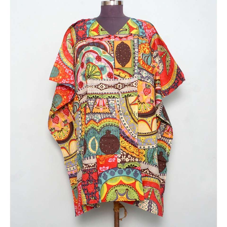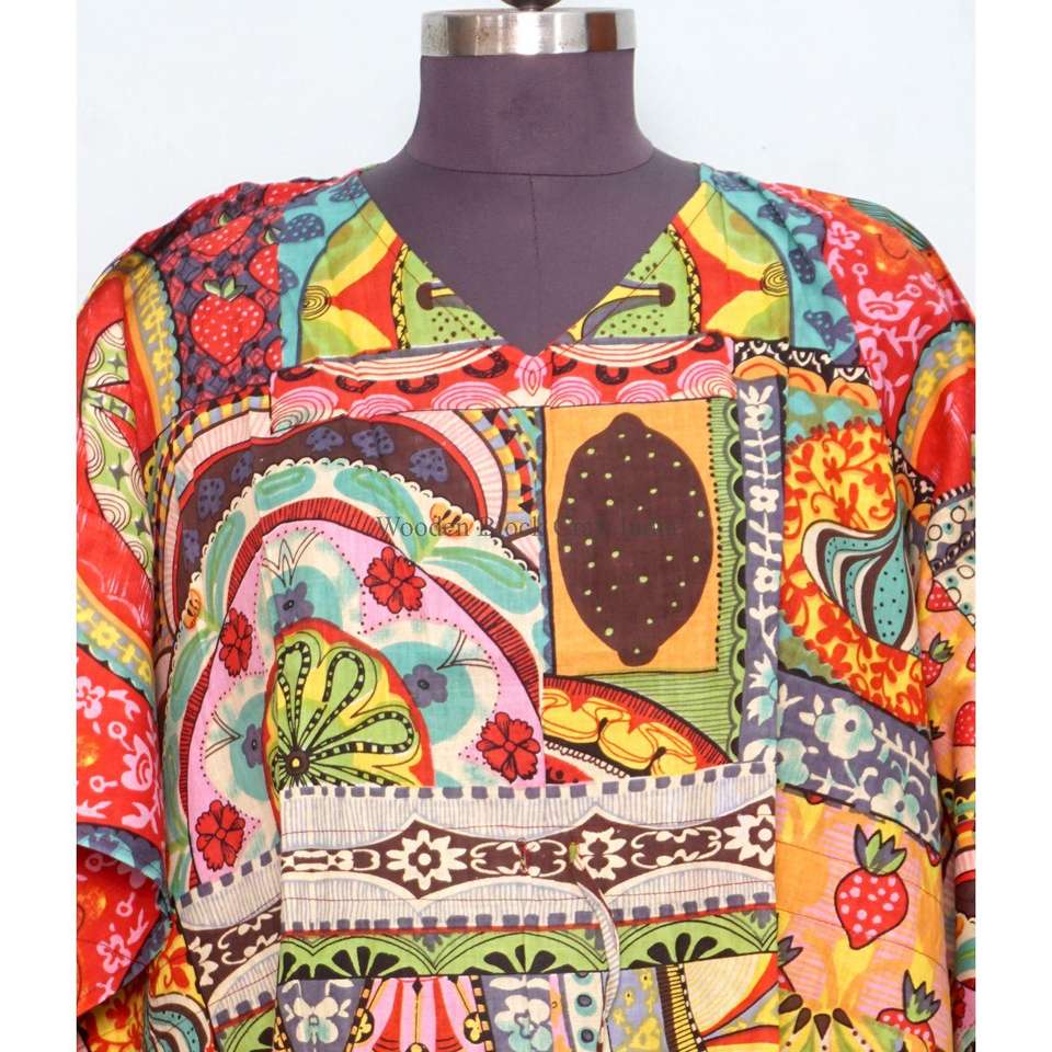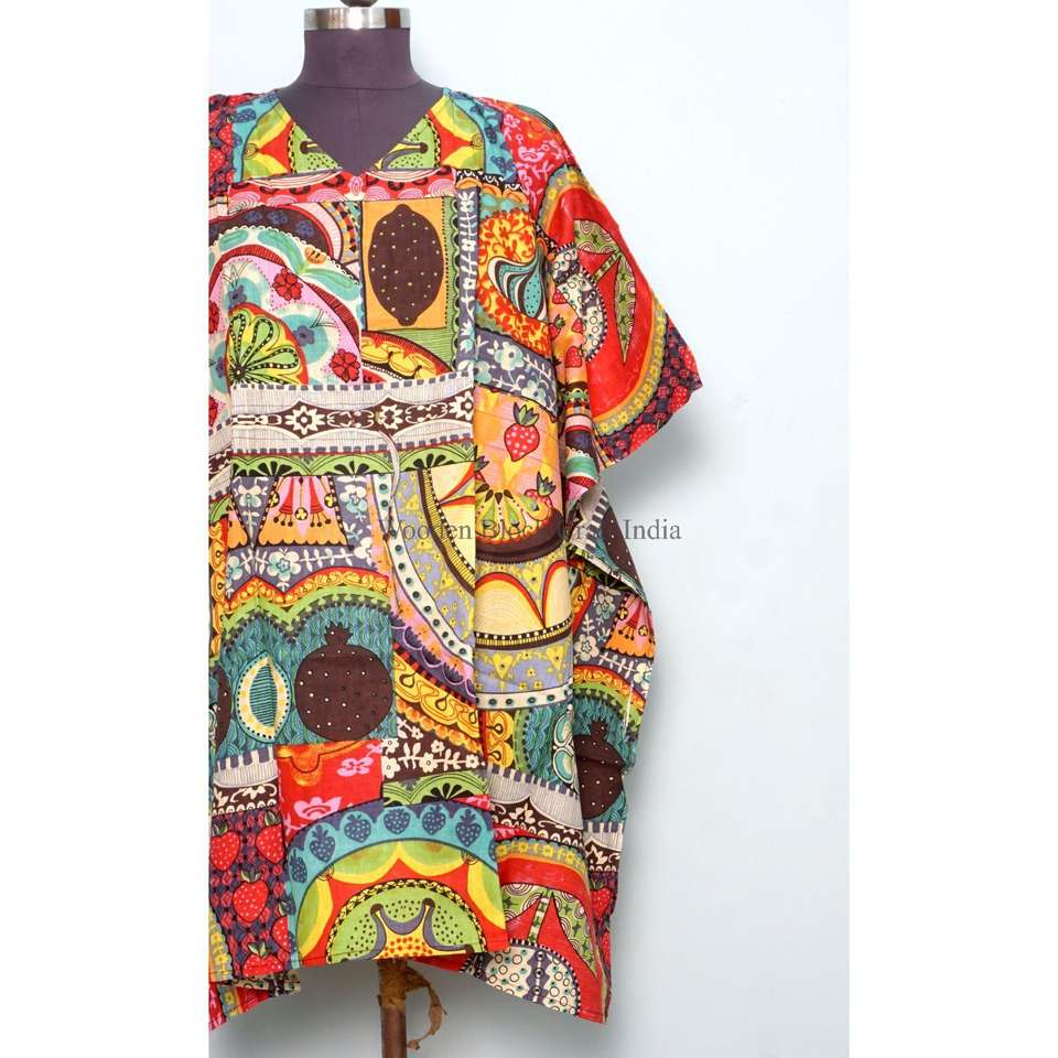 ชุดคลุมสไตล์อินเดียพิมพ์ลายด้วยเทคนิคบล็อกพิมพ์ ทำมือ เป็นมิตรต่อสิ่งแวดล้อม ผ้าฝ้ายออร์แกนิคแท้ 100% น้ำหนักเบา ชุดนอนสั้น ลายดอกไม้ ชุดชายหาด สำหรับฤดูร้อน